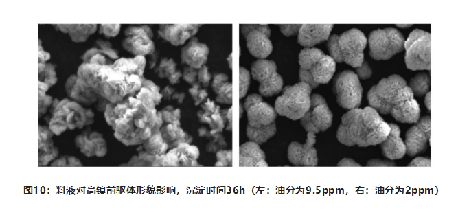 研究結(jié)果表明,若得到高振實高鎳前驅(qū)體,料液油分控制必須≤5ppm。